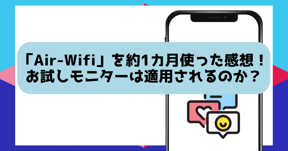 この記事では、「Air-Wifiを1カ月使って分かった通信速度・料金、リアルな使用感」と「お試しモニターとして利用したい方」向けに、実体験ベースで解説します。