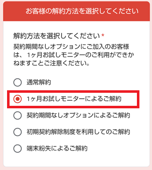 今回はお試しモニター(1カ月)での使用を想定しているので、こちらのオプションは、今回申し込みませんでしたが、1カ月を超えて短期で解約の可能性がある場合は、申し込みを行うオプションです。
