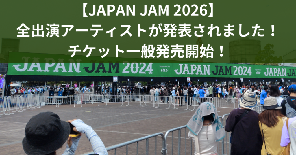 先月の(2月18日)に、「JAPAN JAM 2026」全出演アーティストが発表されました! これで、新たに44組が追加されて、合計104組のアーティストが揃いました! 現在、チケット第5次抽選先行受付もスタートしています。 今年のJAPAN JAMの第4抽選先行では、売... -