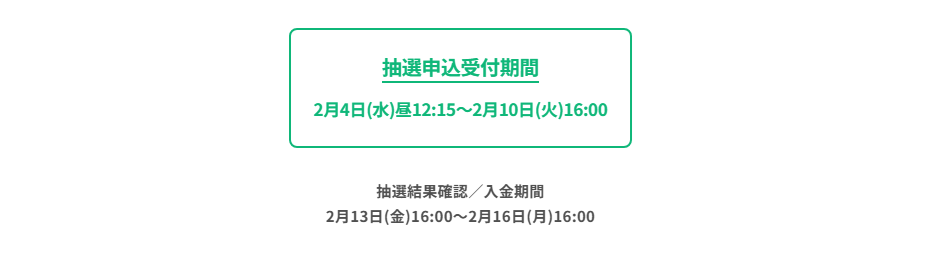 第2次抽選先行は、先着順ではなく抽選方式のため、受付期間内に申し込めば問題ありません。