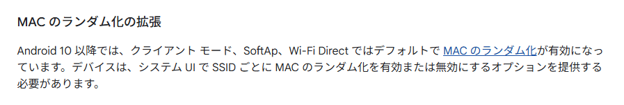 Android OSでは、かなり早い段階で、MACアドレスランダム化を実装しました。