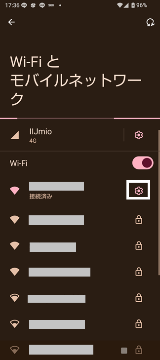 Wi-Fi全体と、接続SSID毎の2か所設定があります。