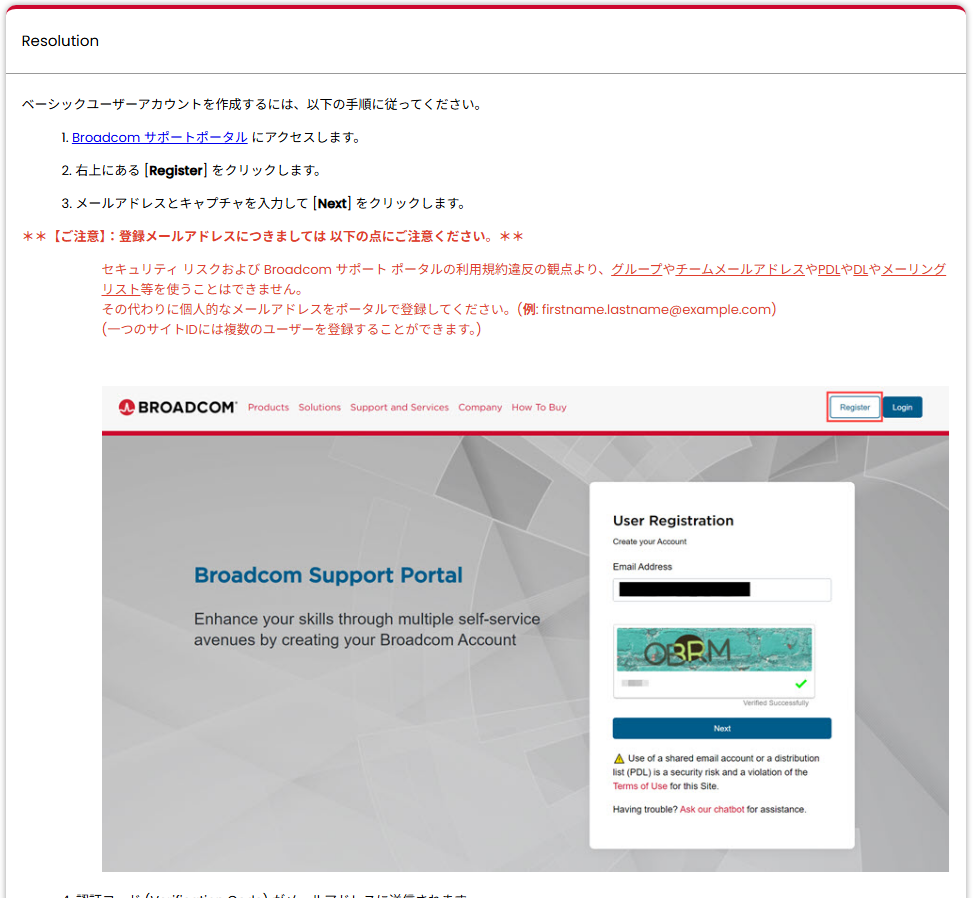 Broadcom サポートポータルとコミュニティにアカウントを登録する