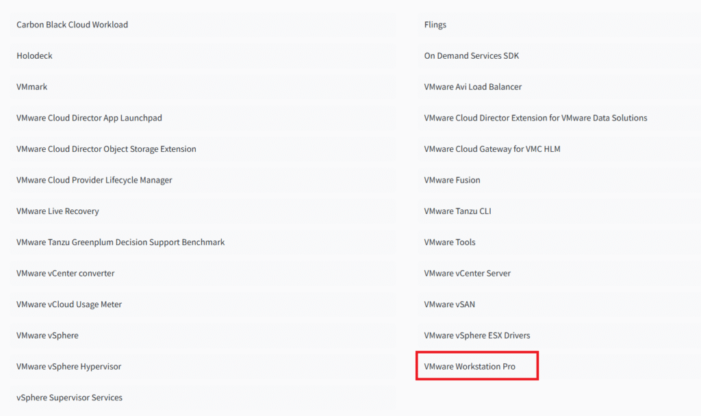 4.Free Softwareが表示されますので、右下「VMware Workstation Pro」をクリック