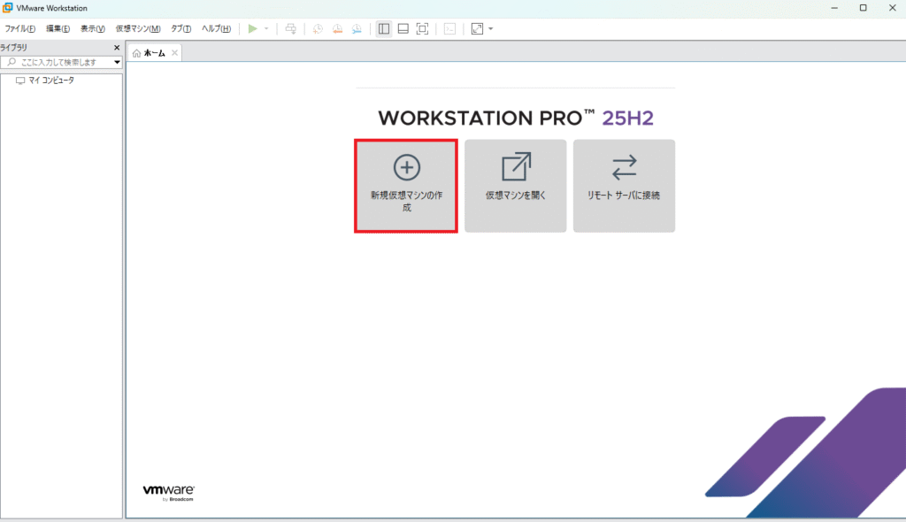 1.VMware Workstation Proを起動し、「新規仮想マシンの作成」をクリック