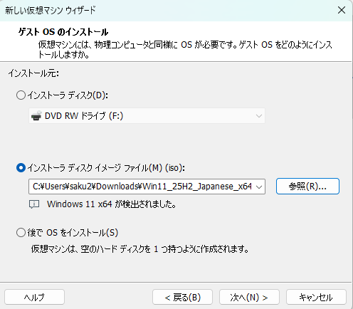 3.詳しい手順は省略しますが、OSのISOイメージファイルを使用して、OSインストール設定を進めます
