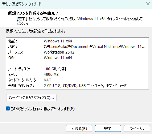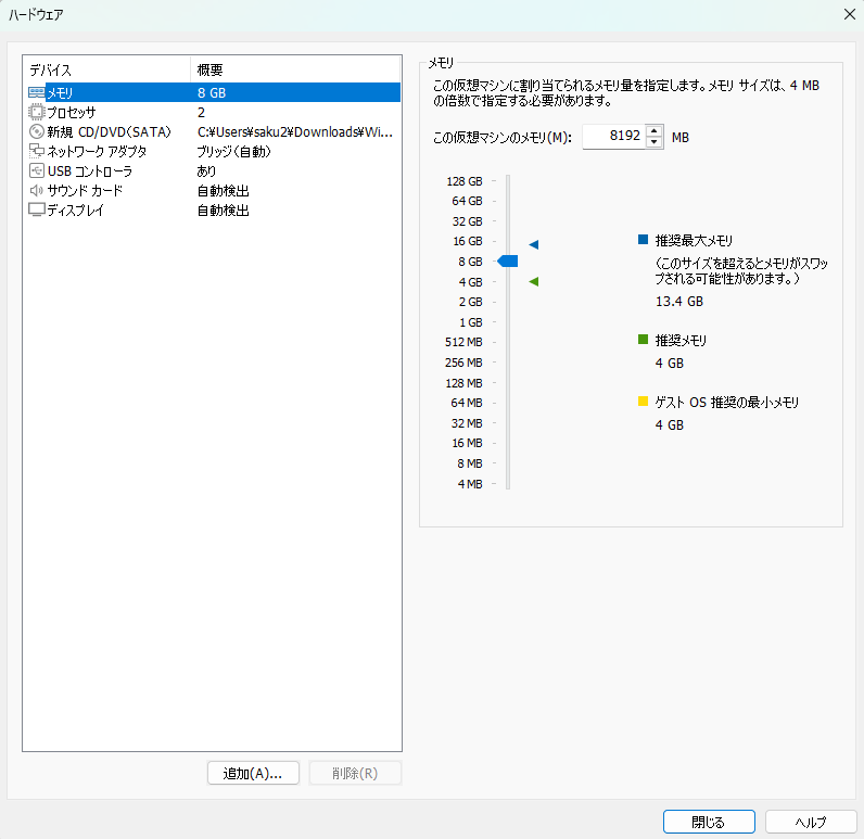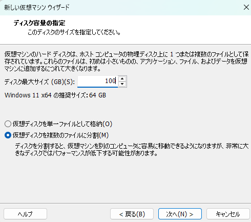 - 仮想マシンを作成するディスク容量は多めに確保する